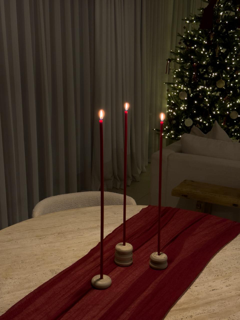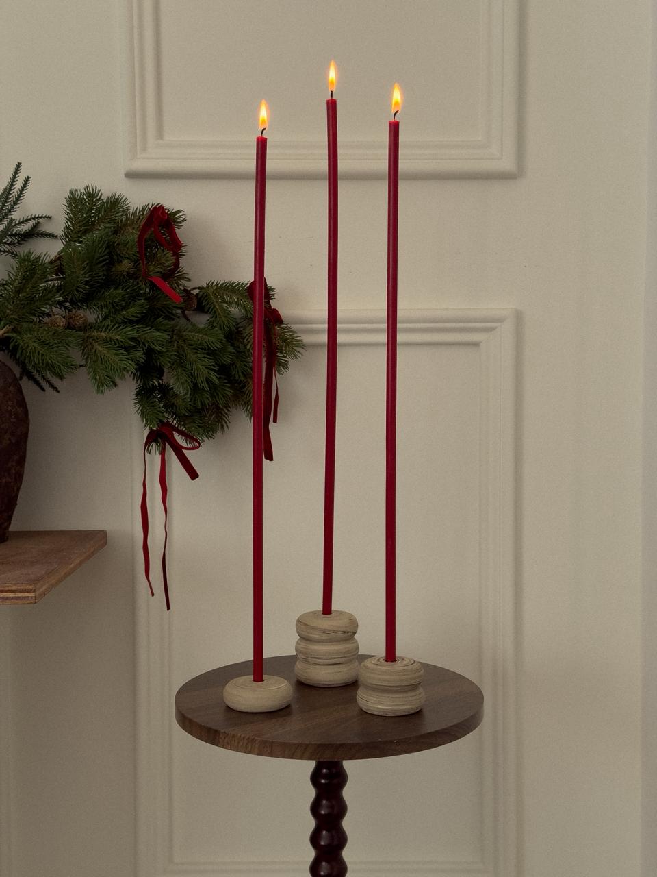 A collaboration between TORICERÁ and SMITH + LIZZY, these marbled stoneware candle bases are crafted to pair seamlessly with the elegant SMITH + LIZZY beeswax table stem candles in a classic Christmas red. Together, they bring a warm, understated presence to any holiday table or space