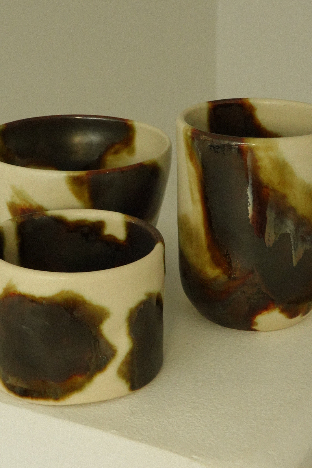 Our Trio in Earthone. A hand-selected set of our three signature forms. The Wonky Cup, The Tumbler & our new Bowl Cup, all finished in our signature glaze. Thoughtfully curated for coffee lovers. A little collection of comfort, made to be reached for again and again.